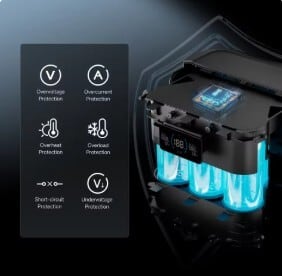 保護機能: BMS(電圧・電流・温度監視)、過負荷保護、過充電・過放電保護、短絡保護 最新機能: デュアル100W PD急速充電、リアルタイムLEDスクリーン