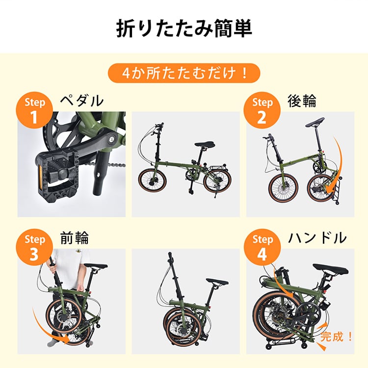 【3つ折り】折りたたみ自転車 シマノ7段ギア 機動力の16インチ 超コンパクト収納
