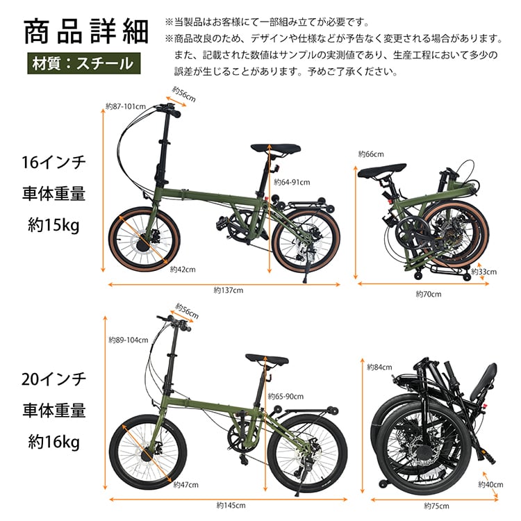 折りたたみ自転車 3つ折り 16インチ シマノ7段ギア ハンドル高さ調節 サドル高さ調節 NS