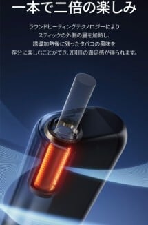 ・一本で二倍の楽しみ:ラウンドヒーティングテクノロジーによりスティックの外側の層を加熱し、誘導加熱後に残ったタバコの風味を存分に楽しむことができ、2回目の満足感が得られます。