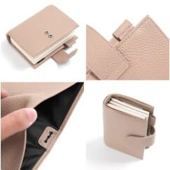 ・ コンパクトながら圧倒的な収納力 :ジッパーポケットや秘書用フラップポケット、3つのカードスロットを備え、パスポートや搭乗券、小銭、ホテルのカードキーまでをスマートに整理。背面の特大ポケットには紙幣や地図も収納可能です。