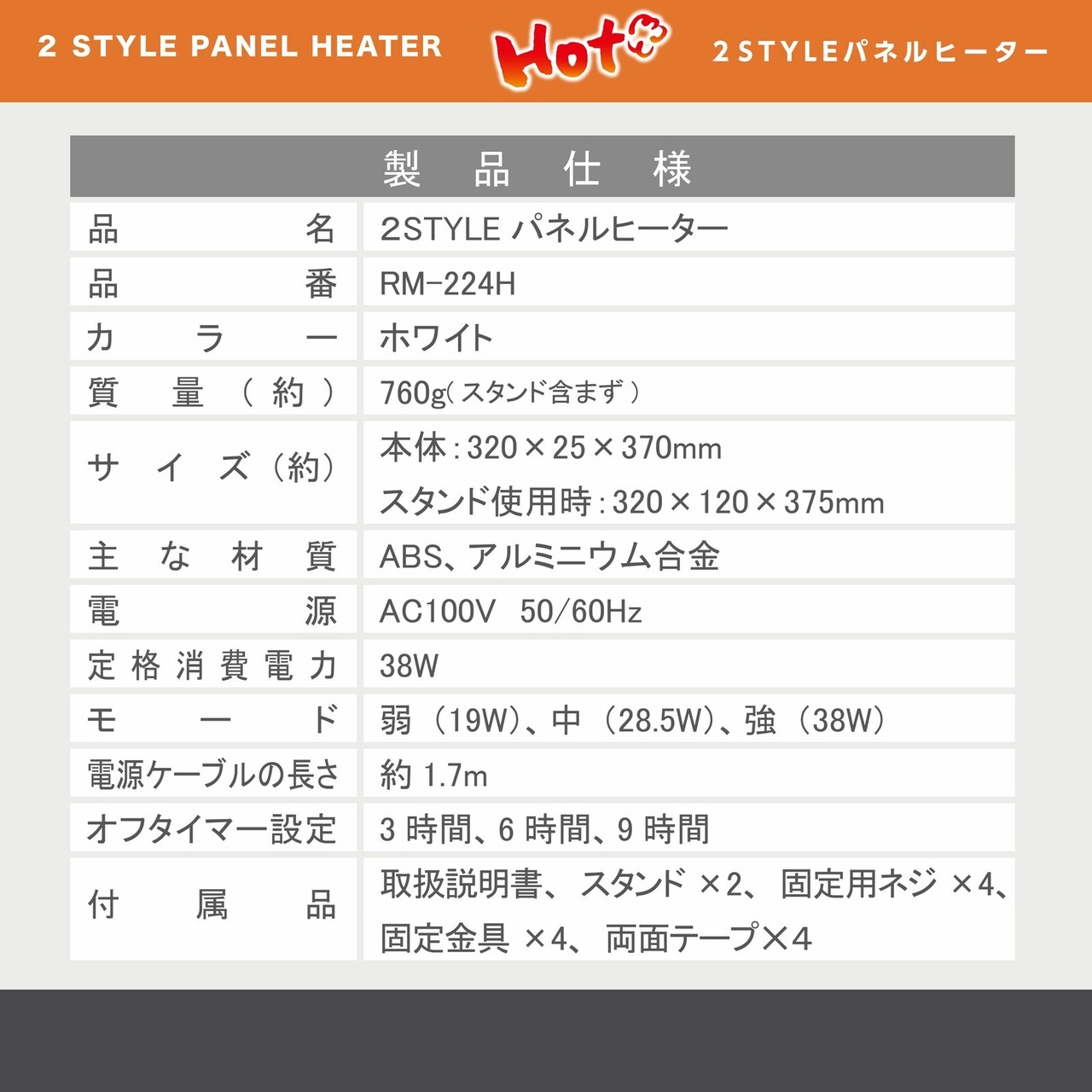 ROOMMATE 2STYLEパネルヒーター RM-224H 縦置き 壁面マグネット取付 タイマー パワー3段階 SD