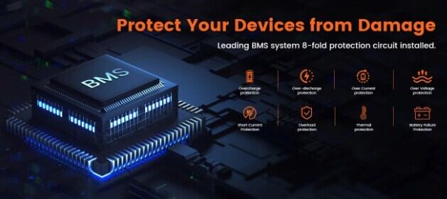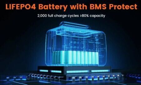 熱暴走のリスクが低いリン酸鉄リチウムイオン電池を採用。2,000回〜6,000回という圧倒的な充放電サイクルに耐え、従来のバッテリーよりも遥かに長く、安全にご使用いただけます。