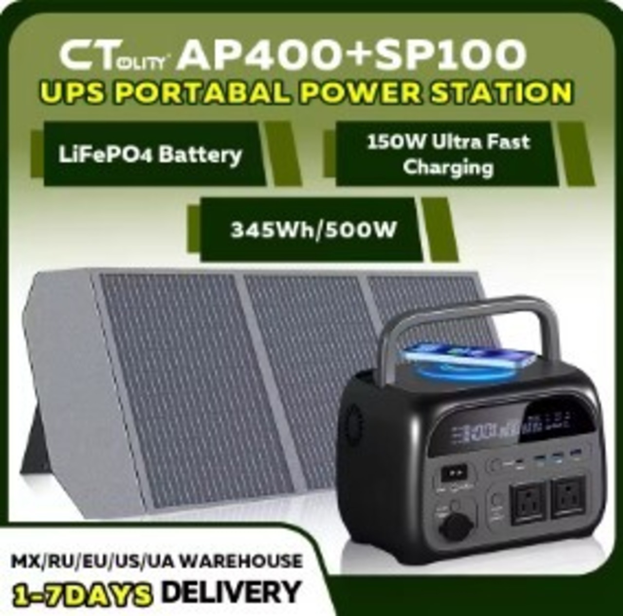 CTOLITY AP400 次世代LiFePO4バッテリー搭載、500Wソーラージェネレーターセット 100W 20.5V ソーラーパネル モバイルバッテリー キャンプ 緊急 旅行 RV AEX 【日本倉庫出荷】