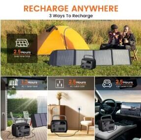 家庭用コンセント(AC)、車のシガーソケット(DC)、そしてソーラーパネルの3WAY充電に対応。ACアダプターがない屋外でも、太陽光さえあればエネルギーを確保できるため、長期の旅行や緊急時にも最適です。