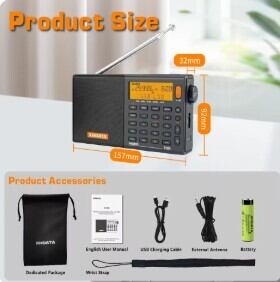 FM帯域は64〜108MHzをカバーし、世界各地の放送に対応。18650リチウム電池による充電式駆動や、持ち運びに便利な専用ポーチの付属など、フィールドでの使用を想定した使い勝手の良さが魅力です。