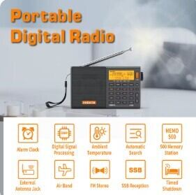 XHDATA D808 ポータブルマルチバンドラジオ受信機 AM/FM/SW/MW SSB AIR RDS ステレオサウンド DSP BCL 災害情報収集 ギフト AEX 【日本倉庫出荷】