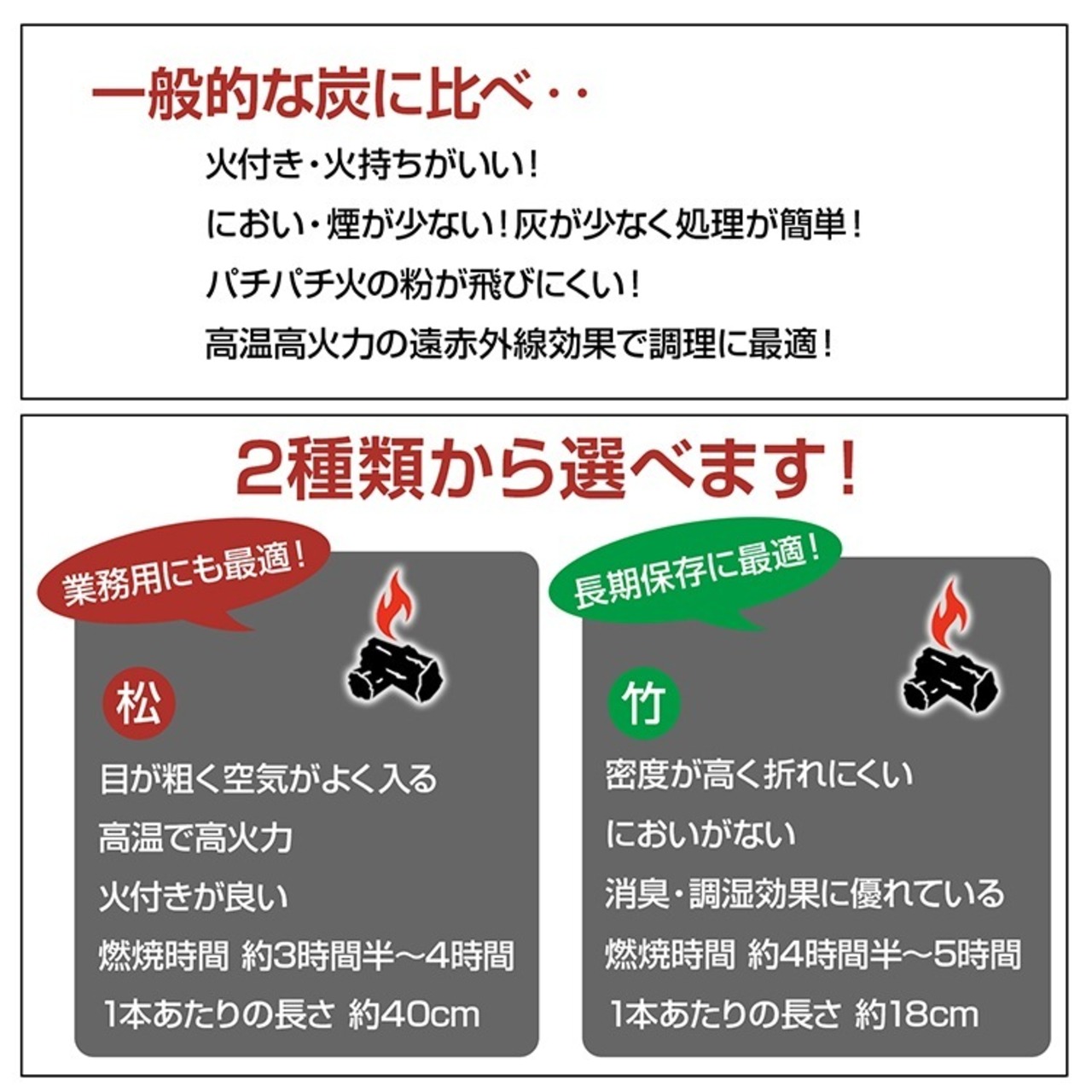 ※炭のサイズは入荷時期によって多少異なる場合があります。また、運送中に折れる可能性がございます。