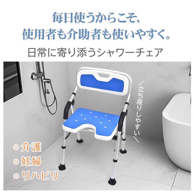 ■膝や腰の負担を軽減!安全設計のシャワーチェアで快適な入浴をサポート!