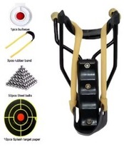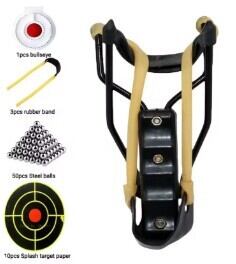●パッケージ内容: パチンコ本体 × 1、輪ゴム × 4、シリコンブルズアイ × 1、鋼球 × 30、ターゲットペーパー × 10