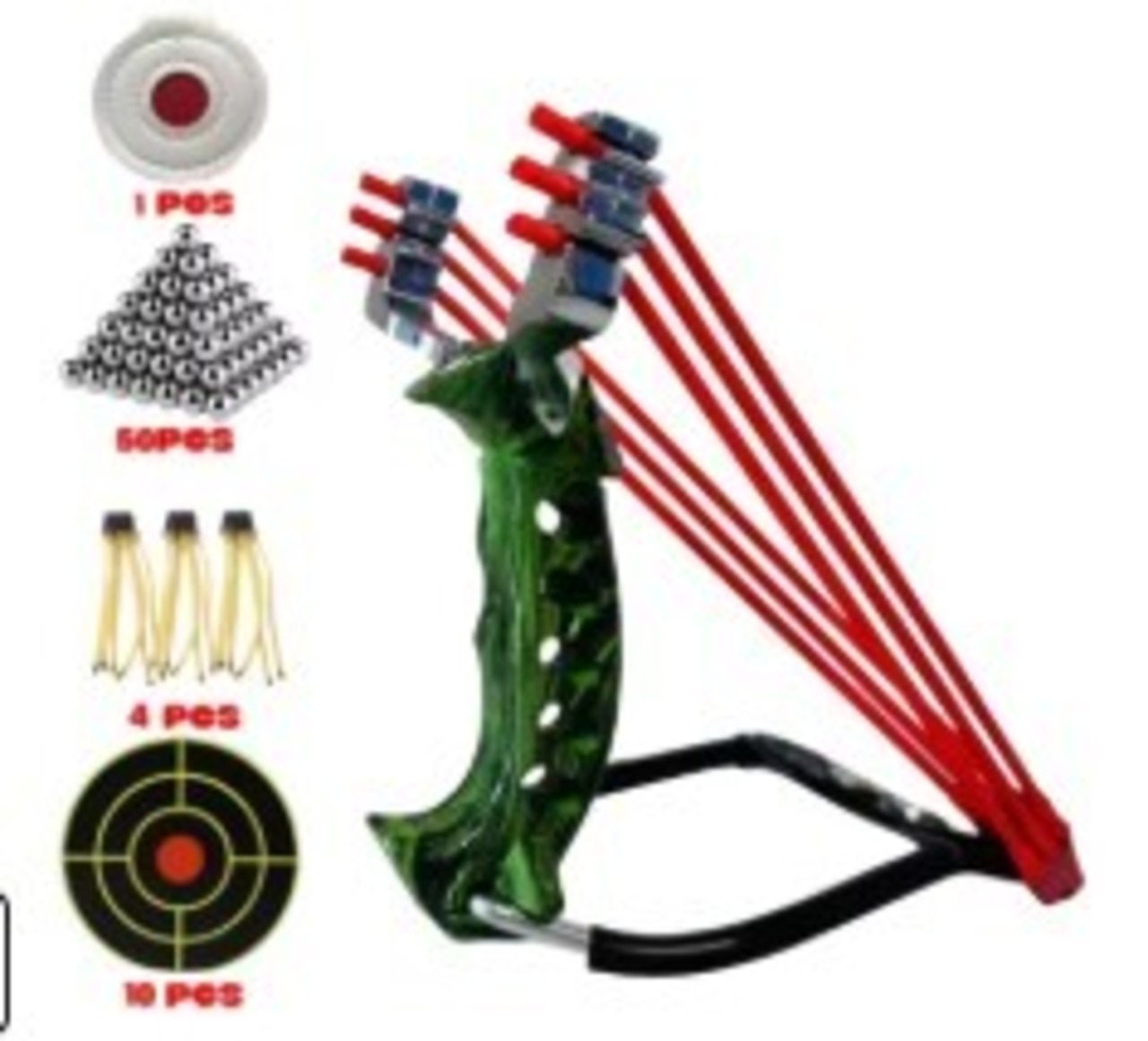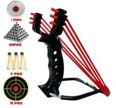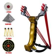 ●パッケージ内容: パチンコ本体 × 1、輪ゴム × 4、シリコンブルズアイ × 1、鋼球 × 30、ターゲットペーパー × 10