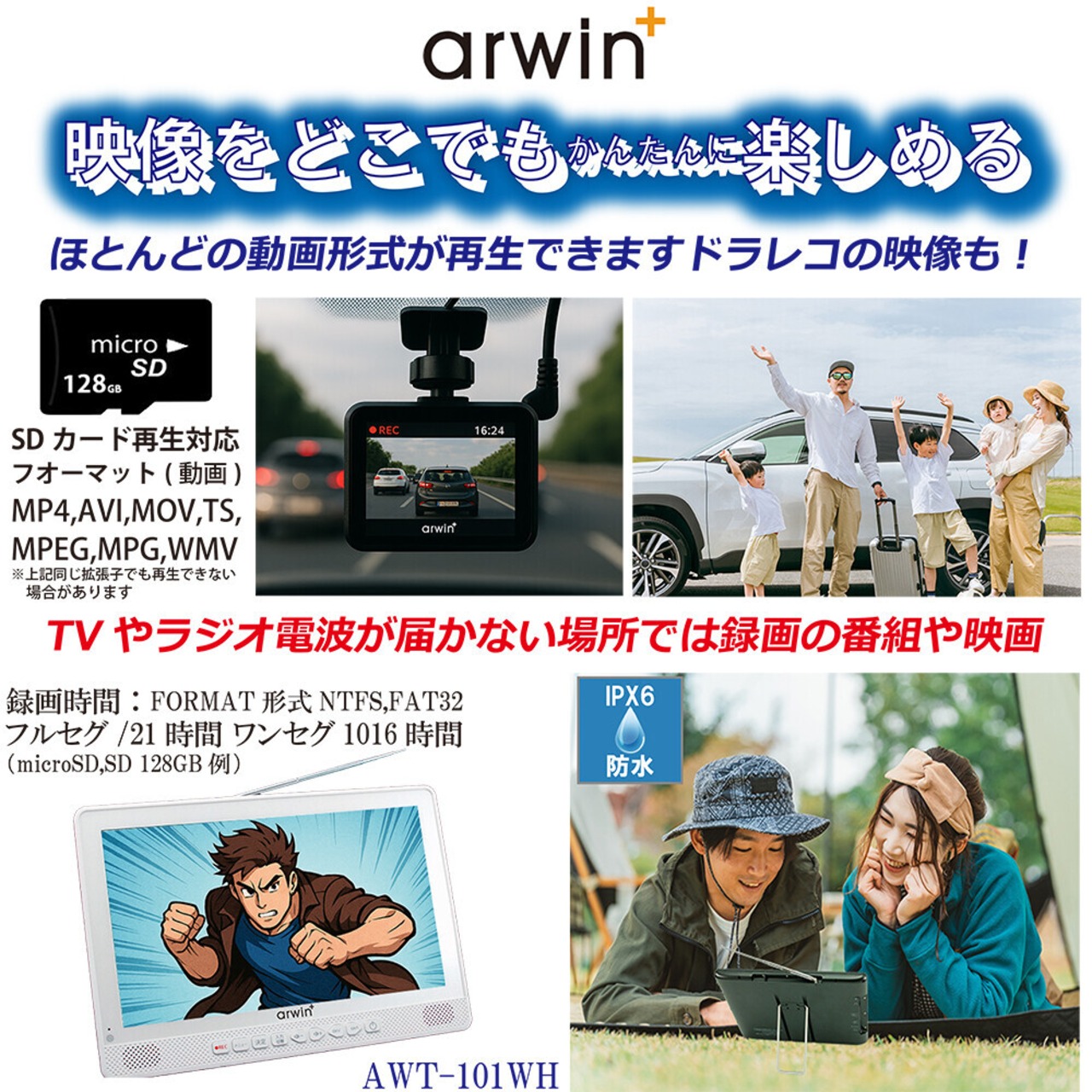 色々な場所でテレビやラジオや音楽を楽しめて録画した番組やドラレコや映画なども...