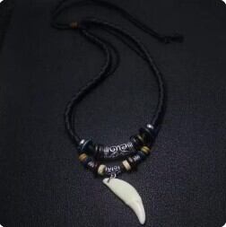 オオカミの歯のペンダント ヒマラヤウルフ 本革合金 ネックレス チャーム レトロ チベット お守り 勇者 ハンドクラフト ギフト AEX
