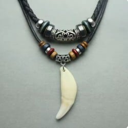 天然牙の個性を活かしつつ、レトロな風合いの合金装飾で武骨かつ洗練されたスタイルに。長さ調整が可能な本革紐は、使い込むほどにあなたの肌に馴染み、味わい深い「自分だけのヴィンテージ」へと育っていきます。