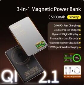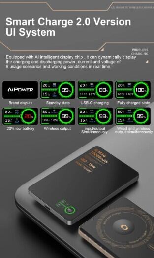 次世代規格「QI 2.1」により、受電コイルの位置を±0.5mmの精度でリアルタイム追跡。iPhone装着時にはダブルポップアップウィジェットが表示されるインテリジェント機能を搭載しています。背面のダイナミックデジタルディスプレイにより、電力・電流・電圧の状態を一目で確認できる、視覚的にも洗練された操作体験を提供します。