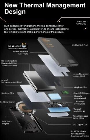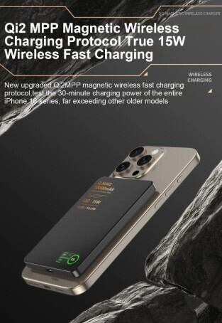 次世代規格「QI 2.1」により、受電コイルの位置を±0.5mmの精度でリアルタイム追跡。iPhone装着時にはダブルポップアップウィジェットが表示されるインテリジェント機能を搭載しています。背面のダイナミックデジタルディスプレイにより、電力・電流・電圧の状態を一目で確認できる、視覚的にも洗練された操作体験を提供します。
