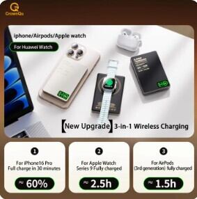 【高品質】 CrownQu E16:QI 2.1認証 次世代3-in-1 磁気式ワイヤレスモバイルバッテリー 10000mAh ギフト AEX 【人気No.1】