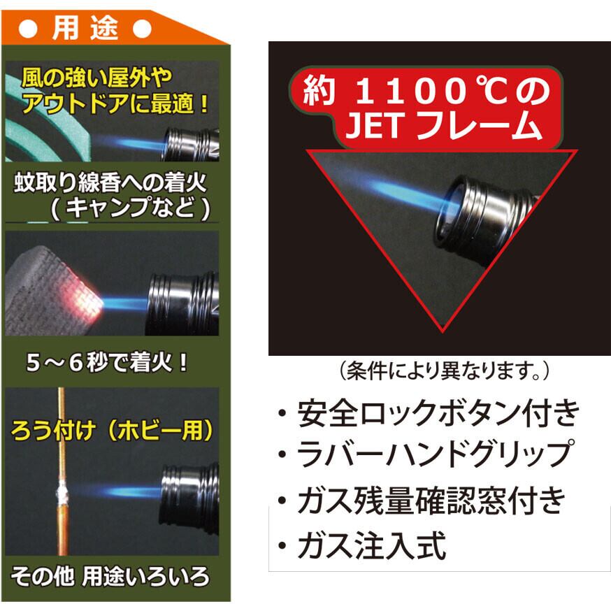 ■仕様:ガス注入式 安全ロック 安全キャップ付き ガス残量視認可 炎調節ネジ付き