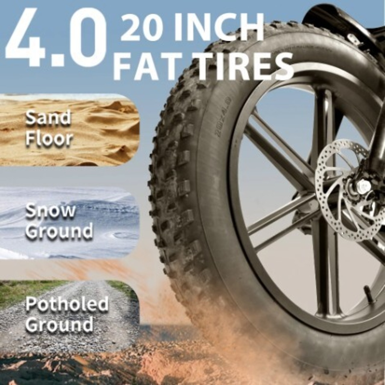 ・ タイヤ: 20インチ × 4.0 オフロードファットタイヤ