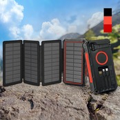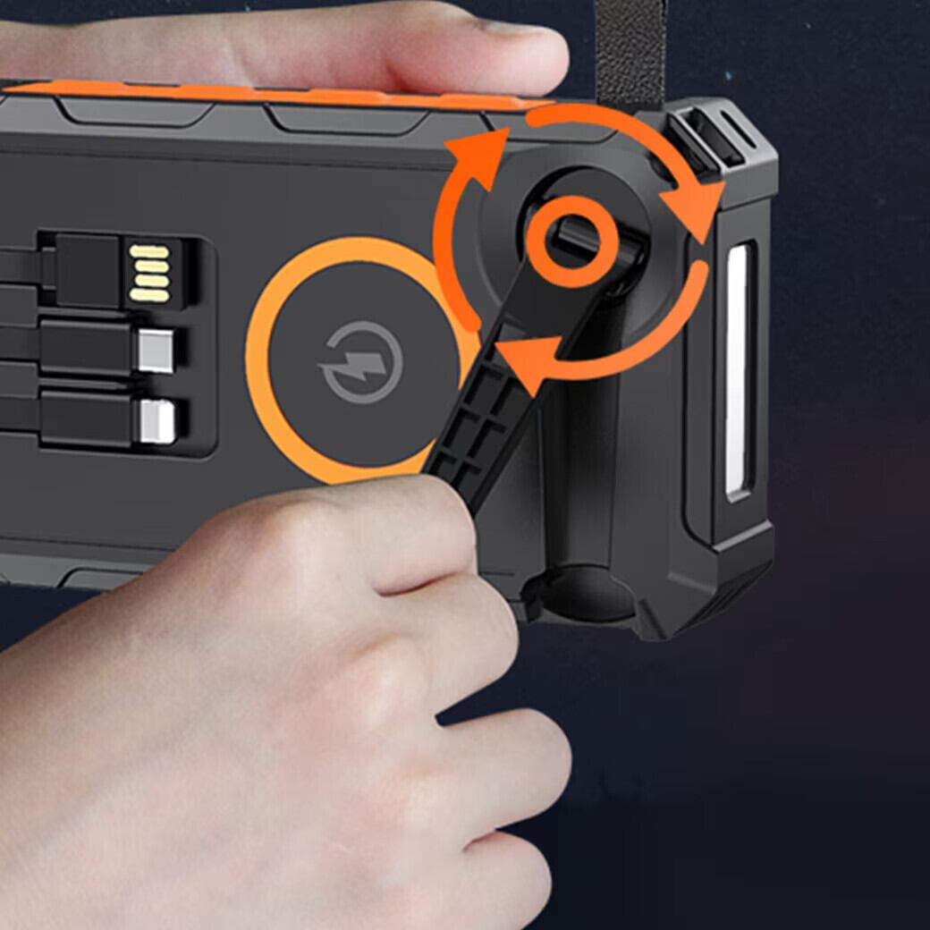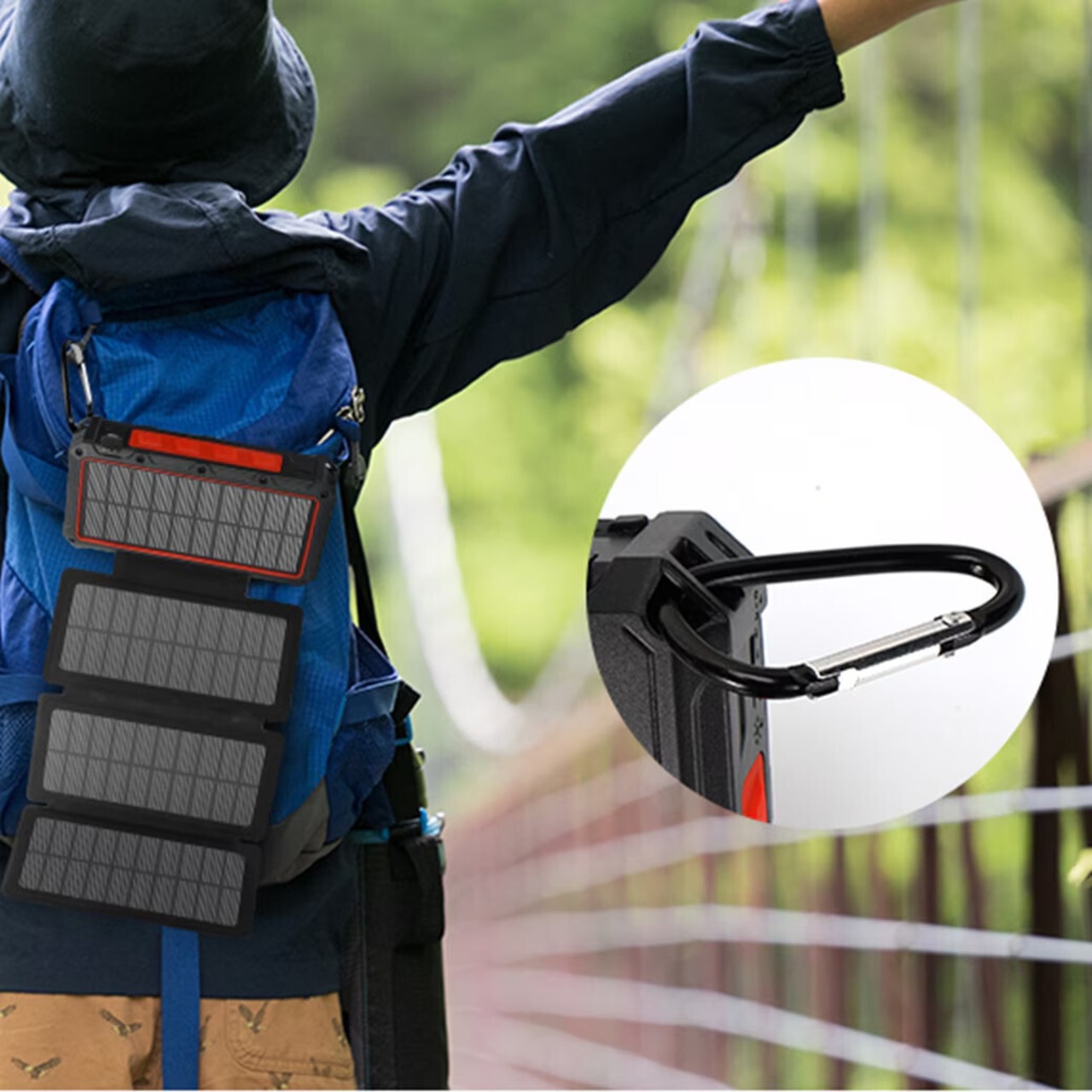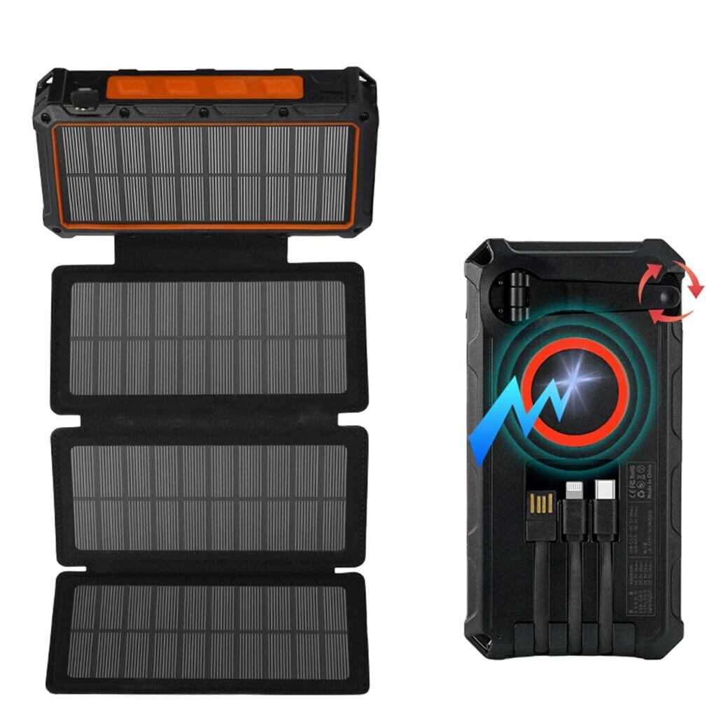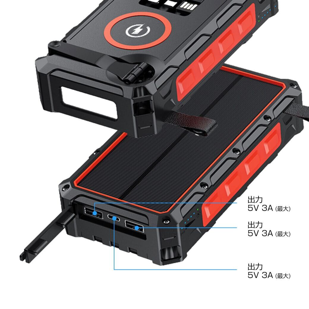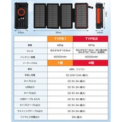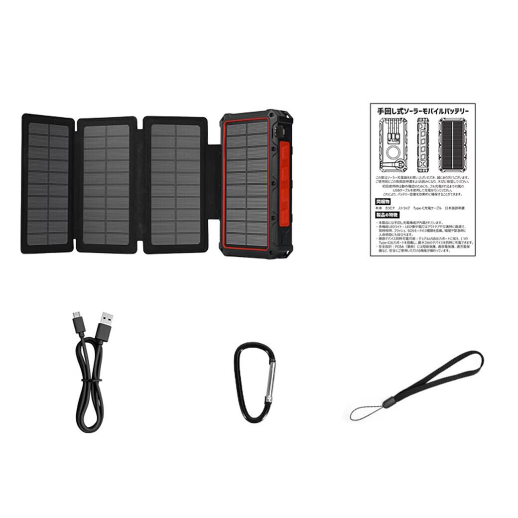 折り畳み式ソーラーパネル一体型大容量バッテリ 40,000mAh LEDライト 手回し充電 防水防塵 アウトドア 釣り 防災 PSE認証 SD