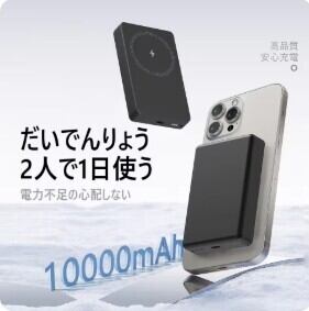 大容量10000mAhと2台同時充電: スマートフォンを複数回フル充電できる安心のキャパシティ。ワイヤレスとType-Cポートの併用により、友人のデバイスも同時にチャージできる余裕を備えています。