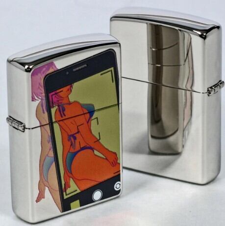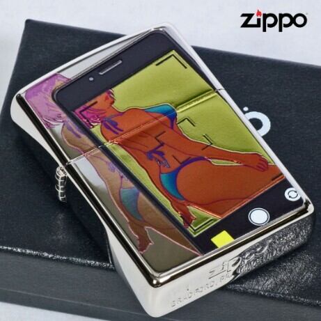 グラマラスな美女をスマホ越しに覗き込んでいるような、ポップでシニカルなデザインを採用。ZIPPOの重厚感と、現代的なガジェット・モチーフのギャップが、周囲の視線を惹きつける圧倒的な個性を放ちます。