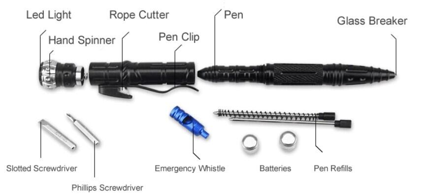 8 in 1 多機能タクティカルペン プロ仕様 自己防衛 屋外サバイバル EDCツール 緊急ledライト ガラスブレーカー ホイッスル
