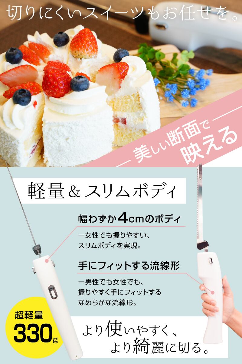 コードレス電動ナイフでだれでも綺麗な切り口。
