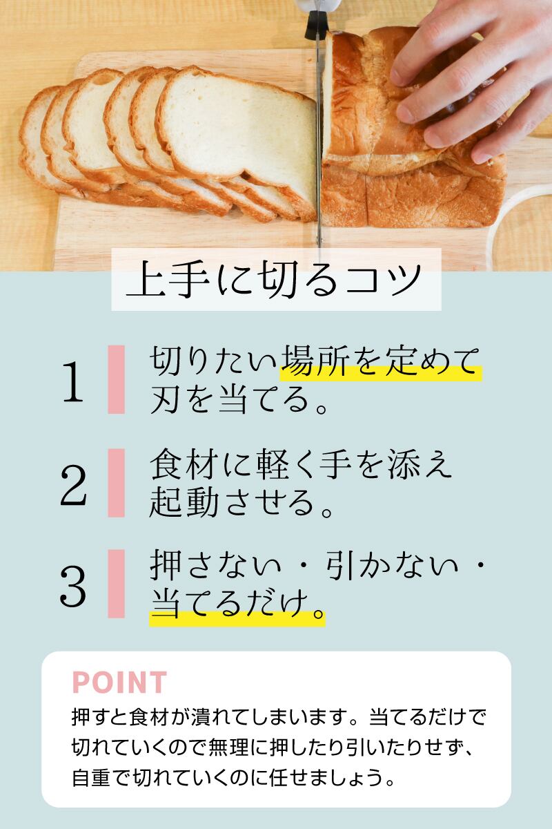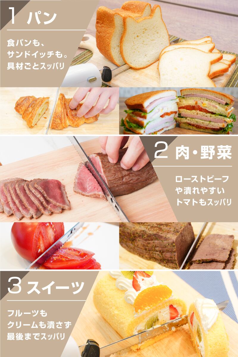 あの、切り口がボロボロになりやすいパンもお肉もスイーツも。