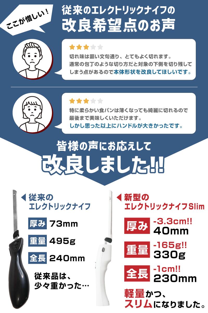 THANKO 断面が美しいコードレス電動包丁「エレクトリックナイフ Slim」
