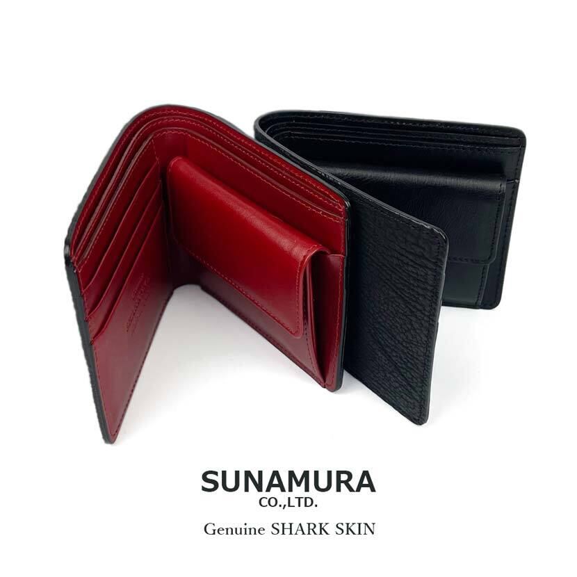 老舗SUNAMURAの高級鮫革を使用した日本製の二つ折りの財布です。