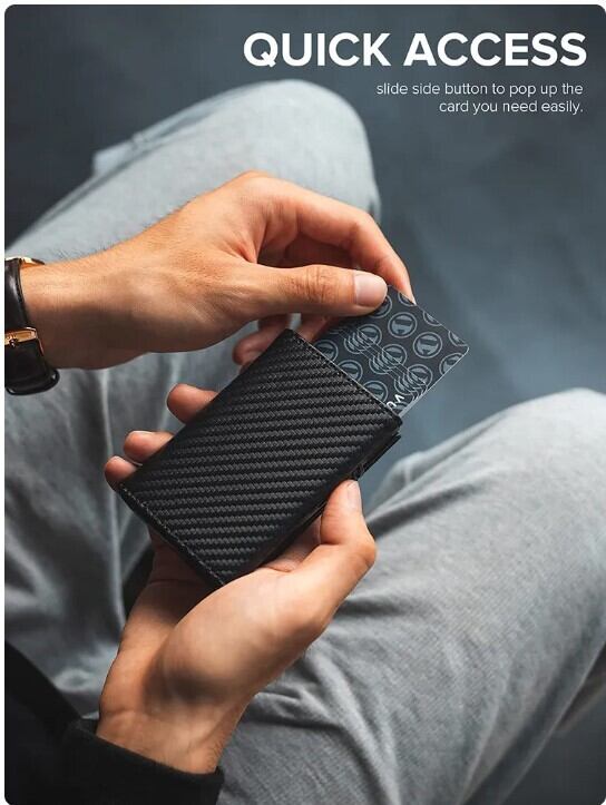 マイクロファイバーウォレット メンズ クレジットカードホルダー RFIDプロテクション ポップアップカード IDウィンドウ コインポケット付き AEX