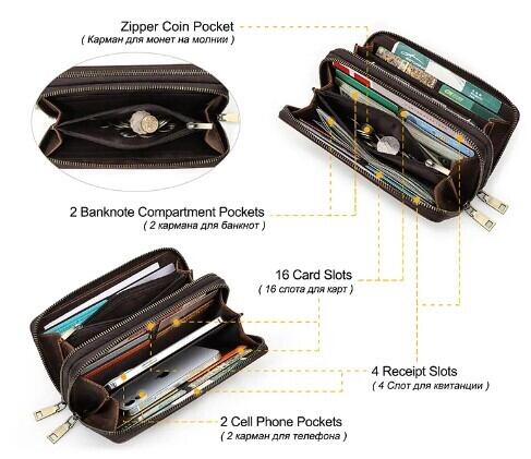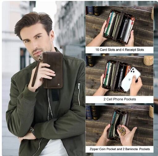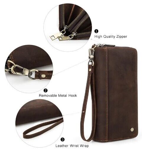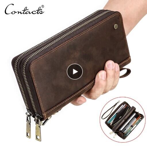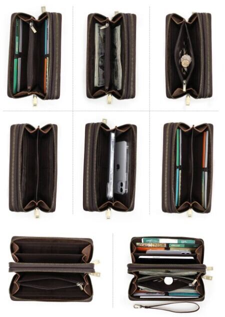 Contacts 本革メンズクラッチバッグ ウォレット カードホルダー ダブルジッパー ヴィンテージ 旅行用 レトロ ギフト AEX