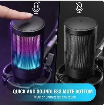 上部のクイックミュートボタンで、すぐにマイクをミュートできます。マイクがミュートされると、RGBがオフになります。マイクのミュートを忘れたことによるストリーミングの事故を防ぎます。