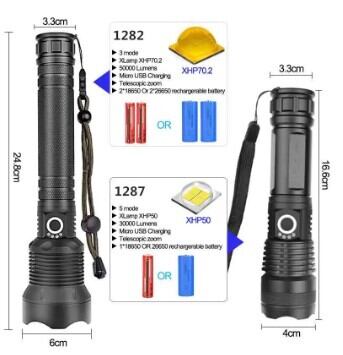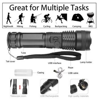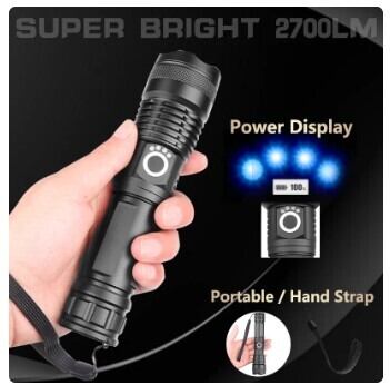 Pocketman 強力LEDフラッシュライト XHP70 充電式 ズーム プロ仕様 護身 キャンプ ハイキング 釣り BBQ 探検 狩猟 AEX