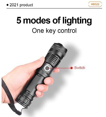 10.スイッチモード: 5つのモード (強い光-中程度の光-低い光-ストロボ-SO)