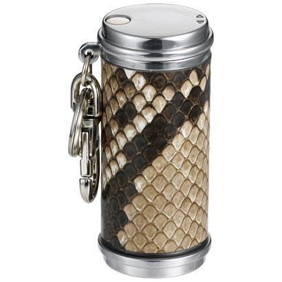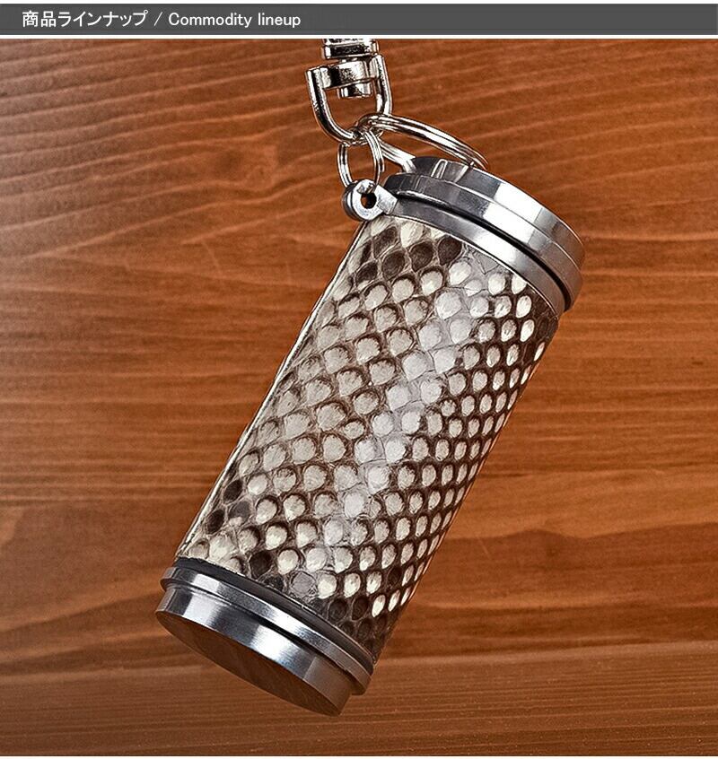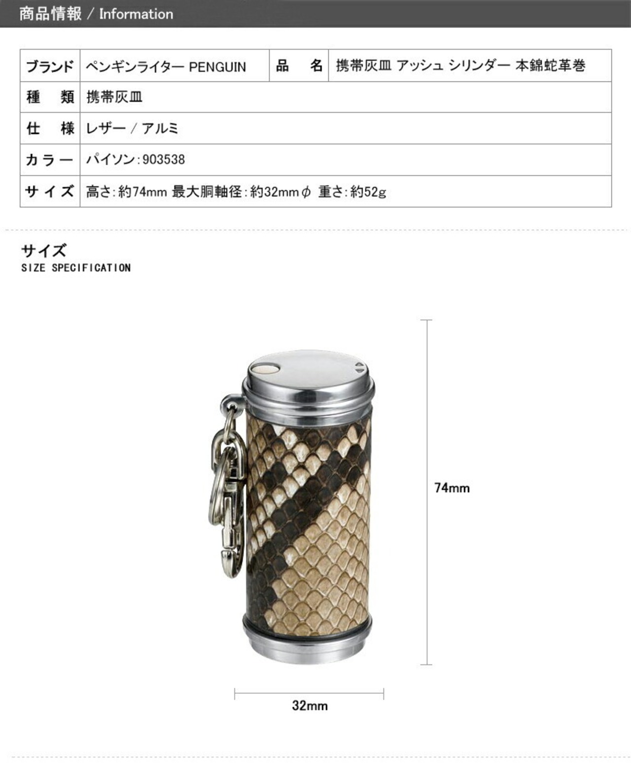 カラビナ付き携帯灰皿 革巻きアッシュシリンダー パイソン (本錦蛇革巻) タバコ アイコス アッシュ・シリンダー メンズ プレゼント ギフト 屋外 SD