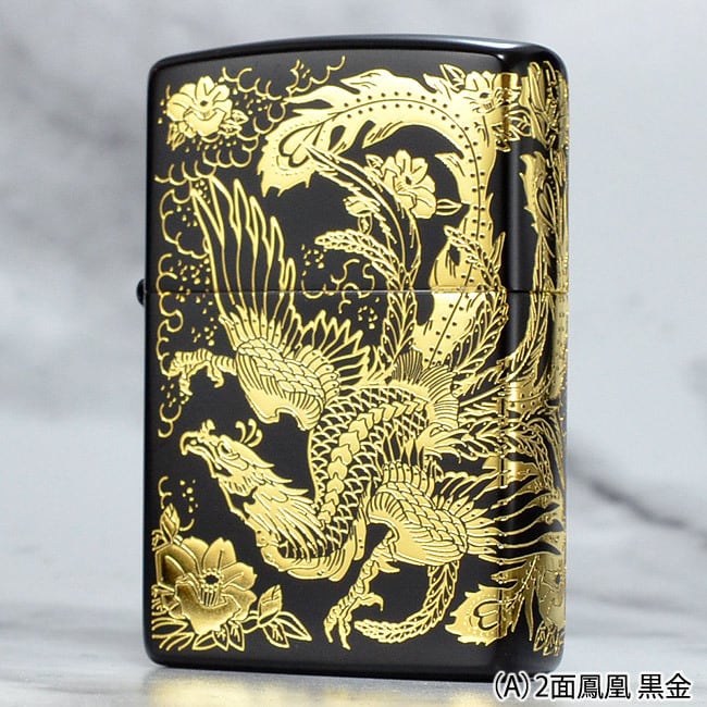 ZIPPO 二面鳳凰 ライター 二面連続加工 和柄 黒金 躍動感 男気 ギフト SD 【在庫残少】