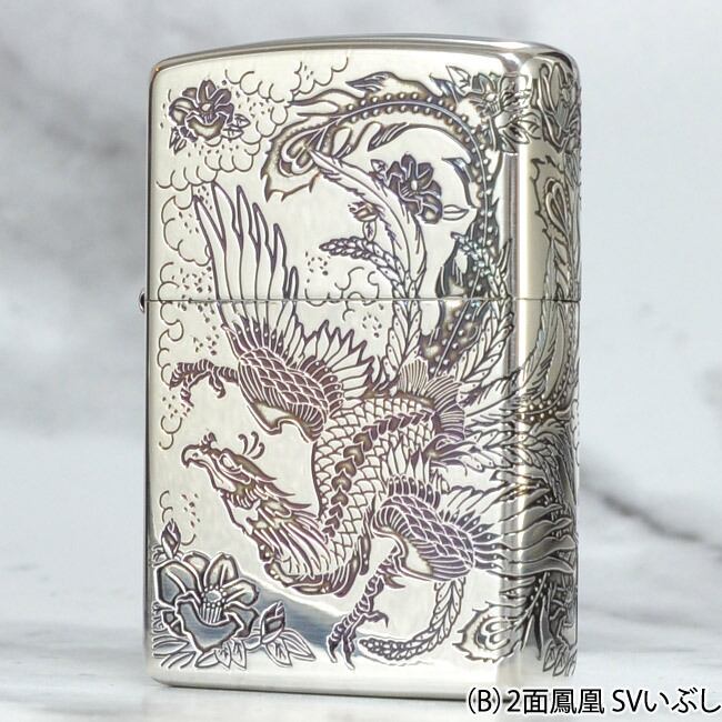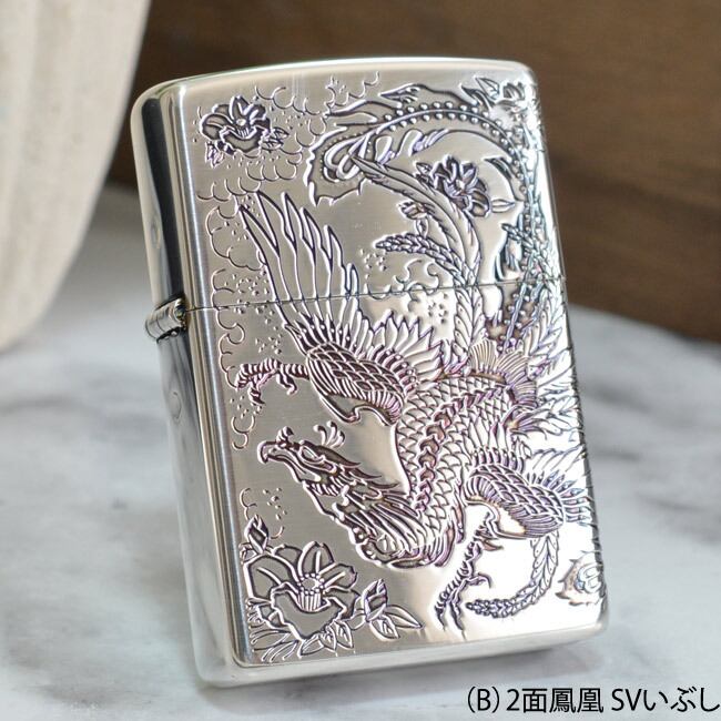 ZIPPO 二面鳳凰 ライターは、二つの鳳凰が躍動感溢れる和柄でデザインされた、男気溢れるアイテムです。銀イブシで仕上げられた繊細な加工が、高級感とクオリティを演出しています。お揃いのギフトとしても最適です。男性のカッコ良さや精悍さを引き立て、特別な日のプレゼントにも喜ばれること間違いなし。ZIPPO ライターは、永く愛用できるアイテムとして定評があります。あなたの大切な人に、シックでスタイリッシュなZIPPO ライターを贈りませんか。