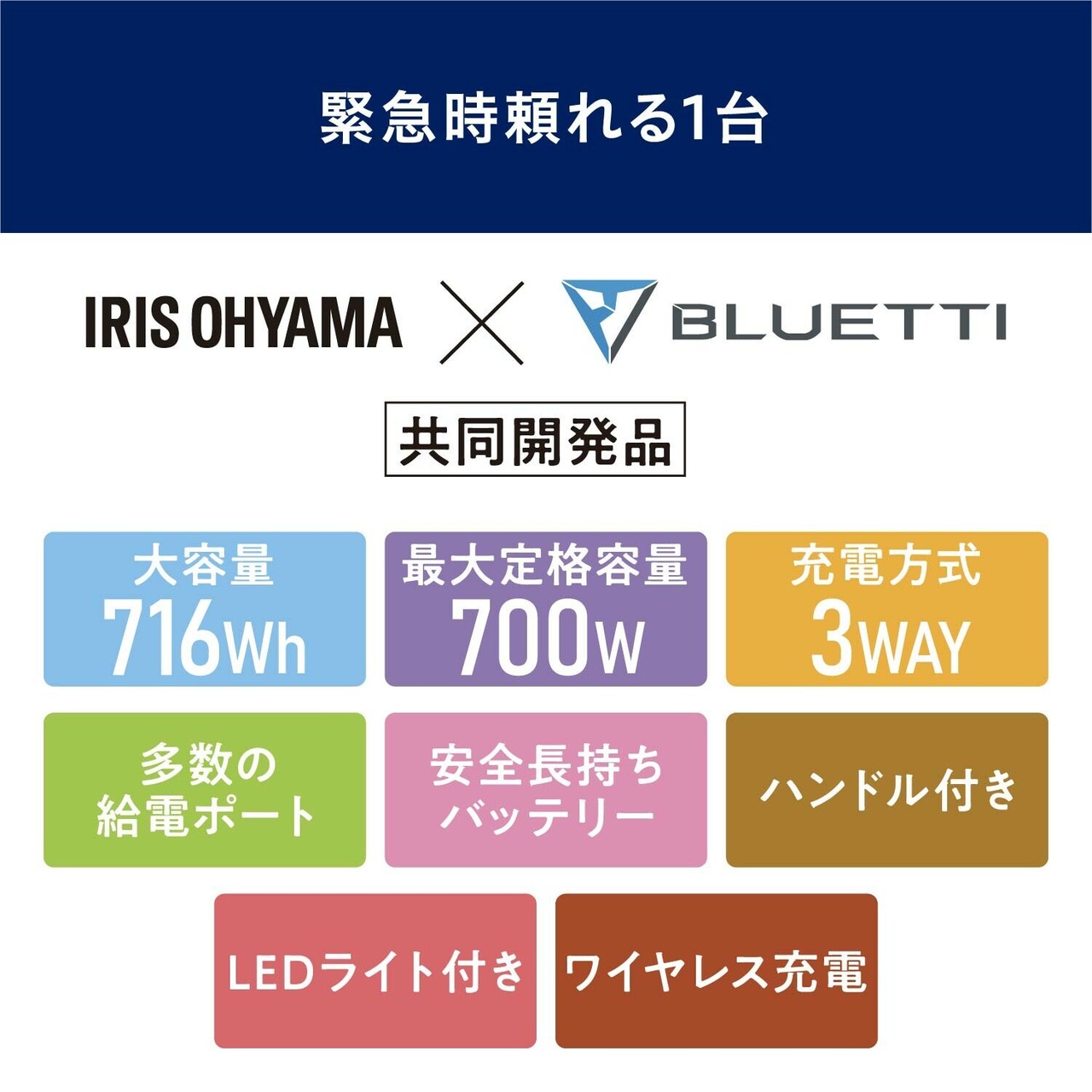 ・アイリスオーヤマと安心安全の電池関連技術を誇るBLUETTIとの共同開発です。