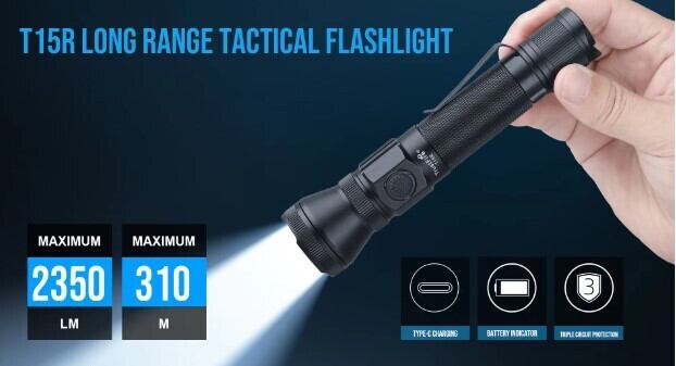 T15Rは、コンパクトで高性能な充電式戦術懐中電灯。USB Type-C充電対応で、長距離照射と耐久性に優れた設計。屋外作業やキャンプ、緊急時に頼れる一台です。