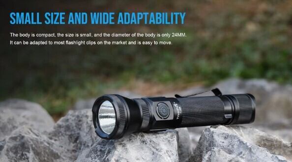 ・コンパクトデザイン: 直径24mmのスリムなボディで、携帯性に優れ、ほとんどの懐中電灯クリップに対応。