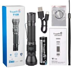 【強力ライト】 タクティカルミリタリーライト T15R 小型強力2350lm Max310m USB-C充電 IP68防水 高耐久性 護身パートナー AEX