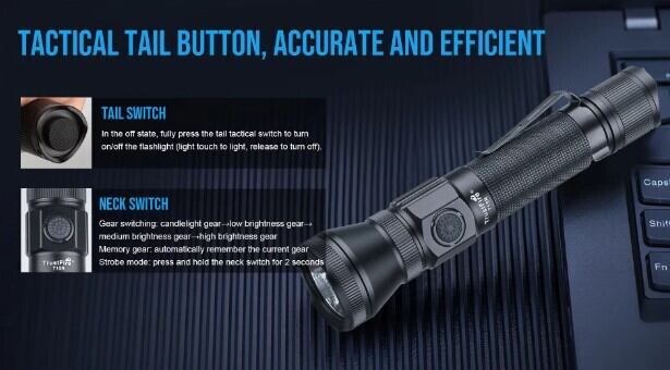 ・スマート機能: ・タクティカル操作: T10R同様、タクティカルテールスイッチで瞬間的に点灯するモーメンタリモードや、完全に押し込んでのオン/オフ操作も簡単。