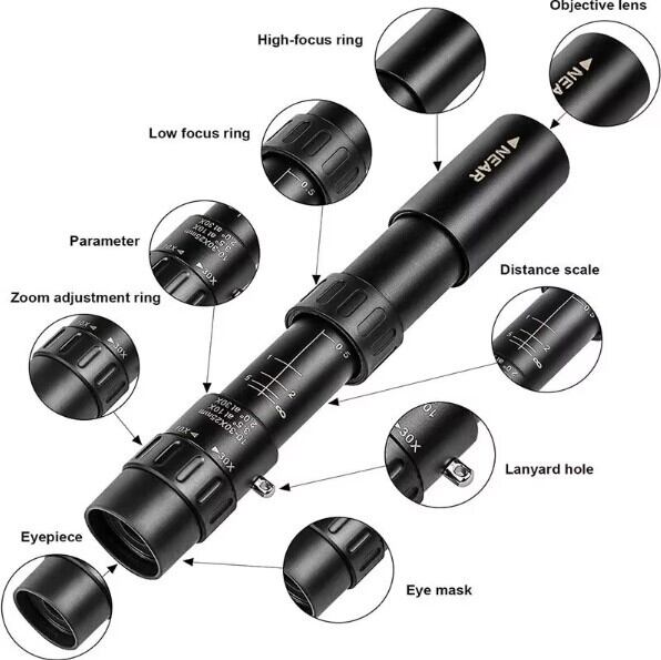 高性能な10-300倍の可変倍率を備えたプロフェッショナルな単眼鏡。BAK4プリズムと多層ブロードバンドグリーンフィルムを使用した高品質な光学系により、クリアで鮮明な視界を実現。内部の金属構造と弾性ゴムによる耐久性の高いデザインで、アウトドアや過酷な環境下でも信頼できるパフォーマンスを発揮します。