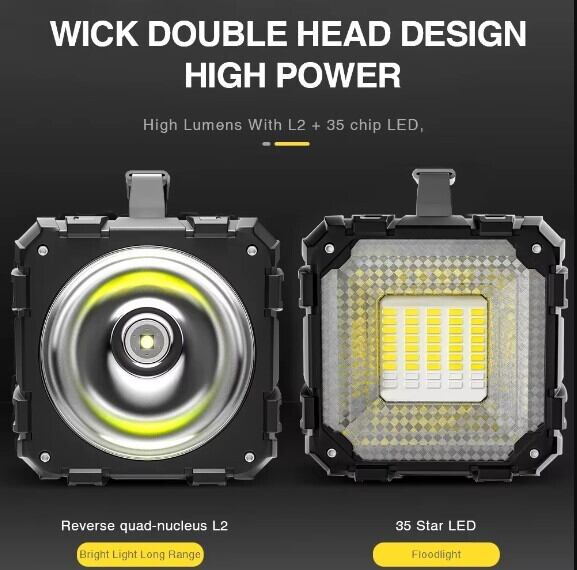 ・双頭LEDランプデザイン:サーチライトや懐中電灯として2つの異なるライトを使い分け可能。