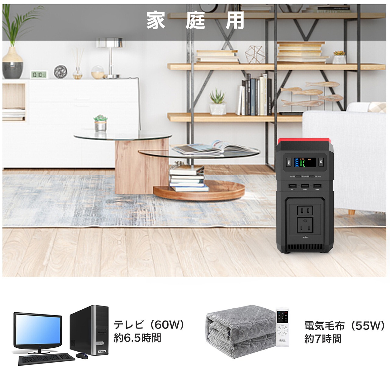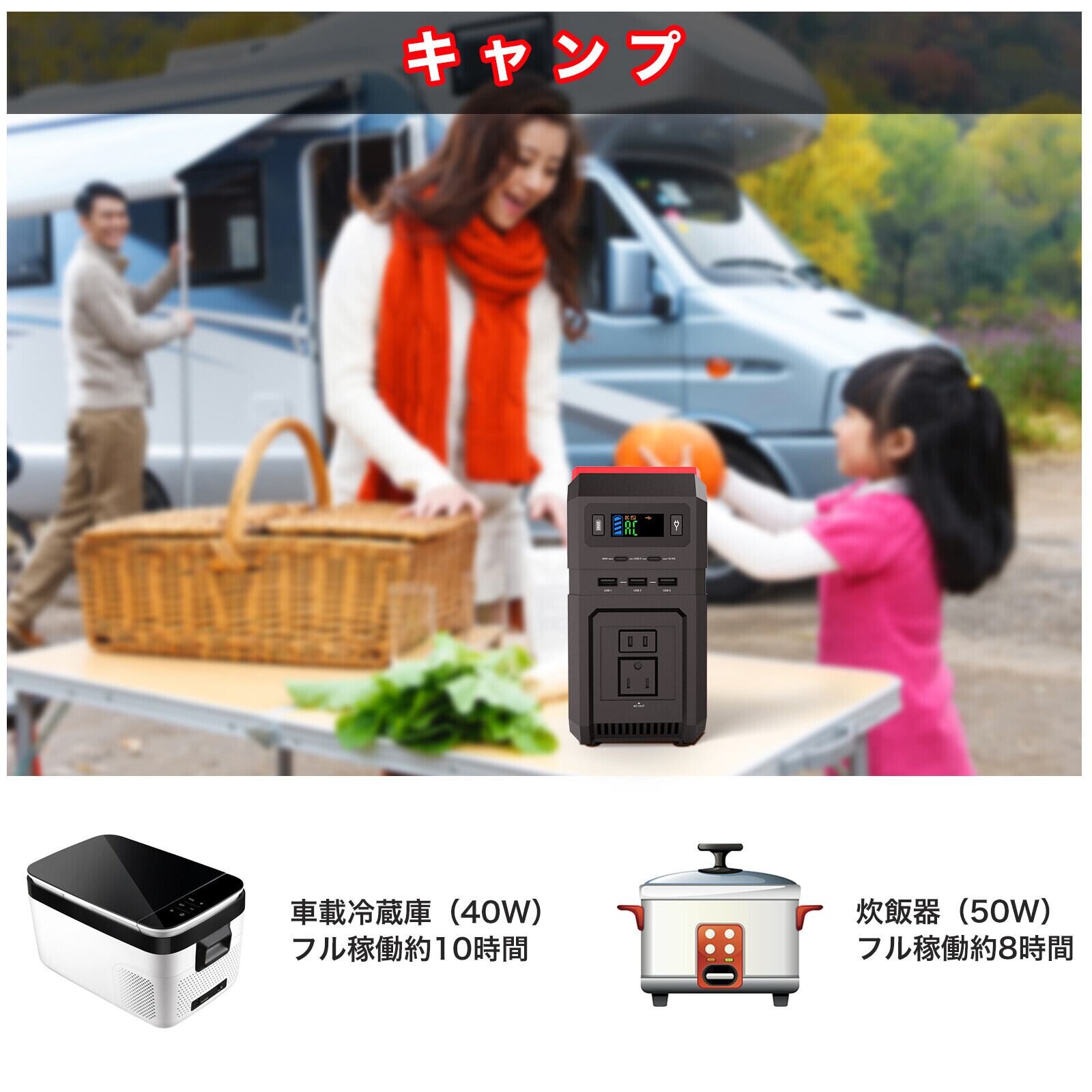 グランピング、キャンプ、車中泊、アウトドアで家庭用電源が使えて便利です。