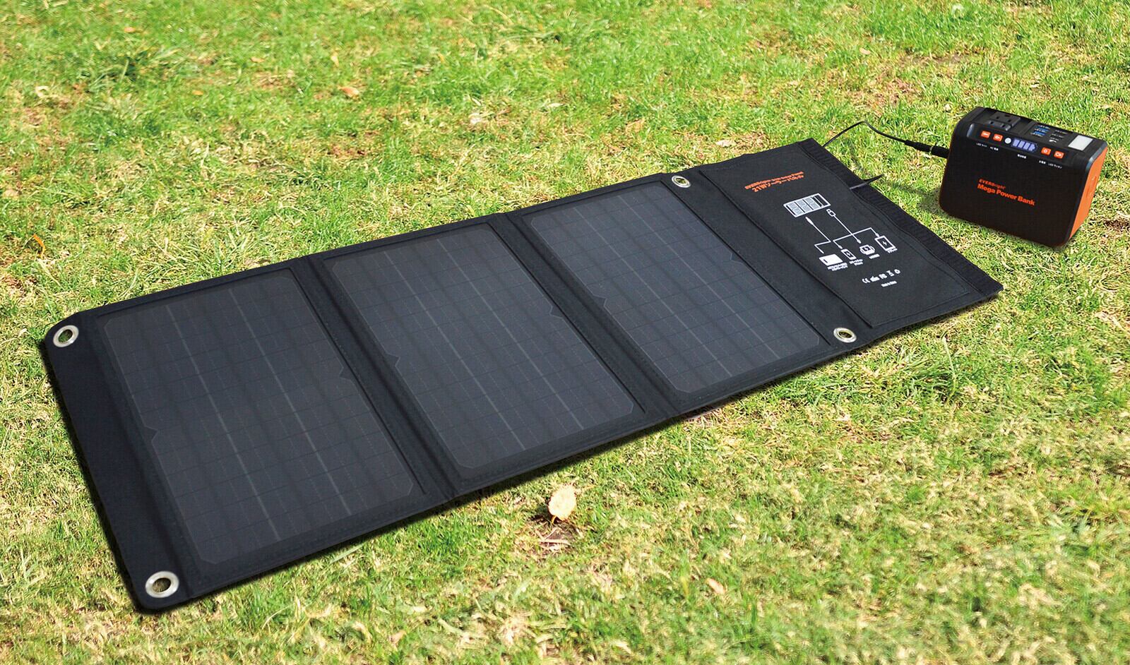 災害や停電時・アウトドアで役立つソーラーパネルと大容量充電池。