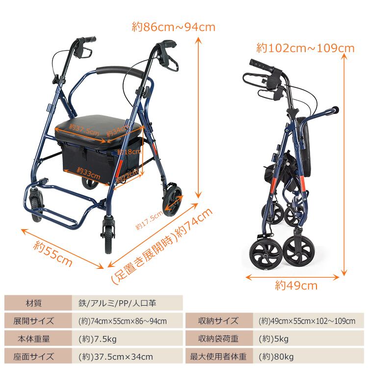 【展開サイズ】:(約)74cm×55cm×86〜94cm