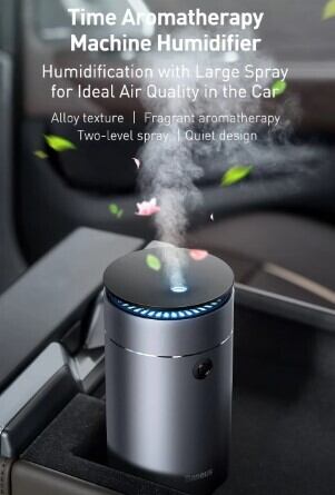 高品質なアルミニウム合金と洗練されたデザインが特徴のアロマ加湿器。車やオフィス、家庭での使用に最適で、ターボファン内蔵で強力なミストを提供。ノイズレスで静かに加湿し、3色のアンビエントライトでリラックス空間を演出します。